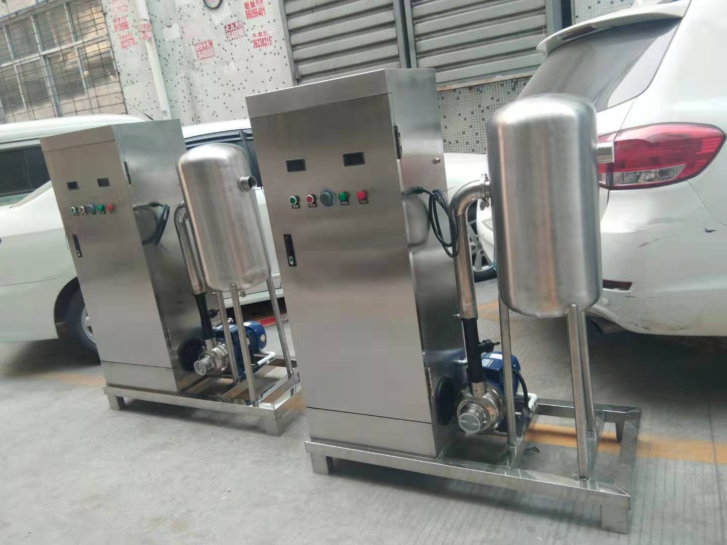 我公司為客戶定制4套高濃度臭氧水生產(chǎn)器即我們說(shuō)的臭氧水機(jī),外觀全為316L不銹鋼機(jī)箱和反應(yīng)罐。