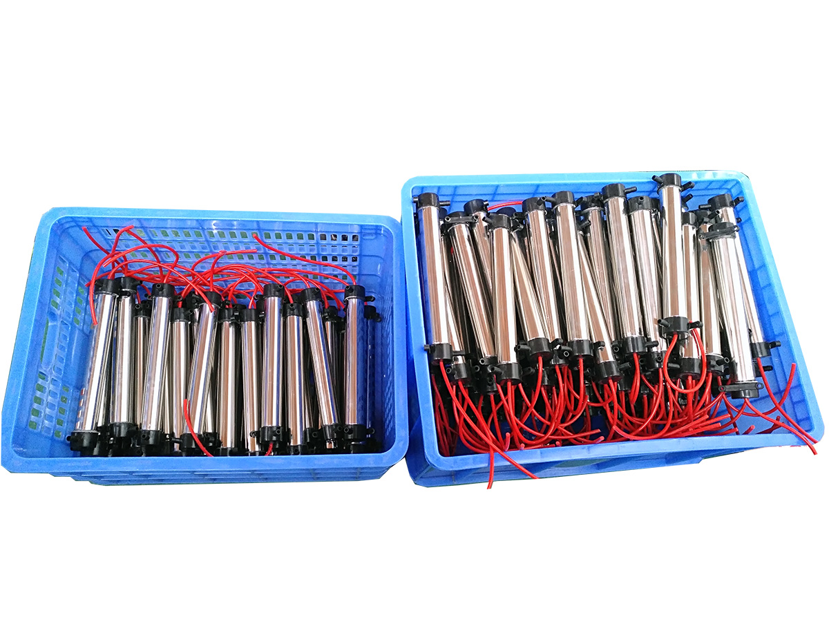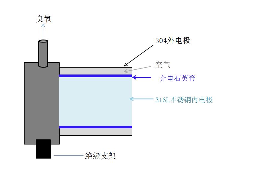 2.石英管的構(gòu)成及特點:內(nèi)電極316L不銹鋼,外電極304不銹鋼,石英介電管,阻燃抗氧化材料氣嘴堵頭,由于采用低頻放電,臭氧管溫升極低,幾乎不發(fā)熱,正常使用壽命1萬小時。