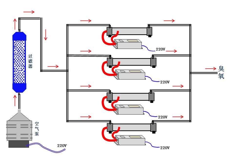 第二步:進(jìn)氣口及臭氧出口的安裝:臭氧管的氣嘴不分進(jìn)出氣嘴,任意一端均可進(jìn)出,進(jìn)出氣口的導(dǎo)氣管材料可用硅膠管或PC軟管,要求不漏氣即可,通入臭氧管進(jìn)氣口的空氣,要確保氣體潔凈干燥,不含油份,溫度不要高于35度,濕度不能大于70%RH。